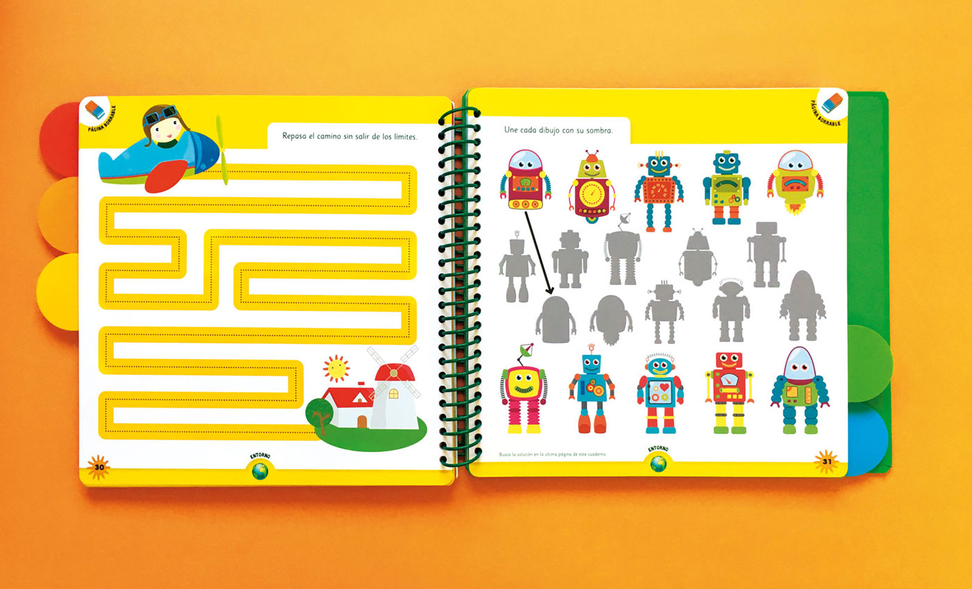 Three activity books with different levels of difficulty, full of games, puzzles, letters and activities.