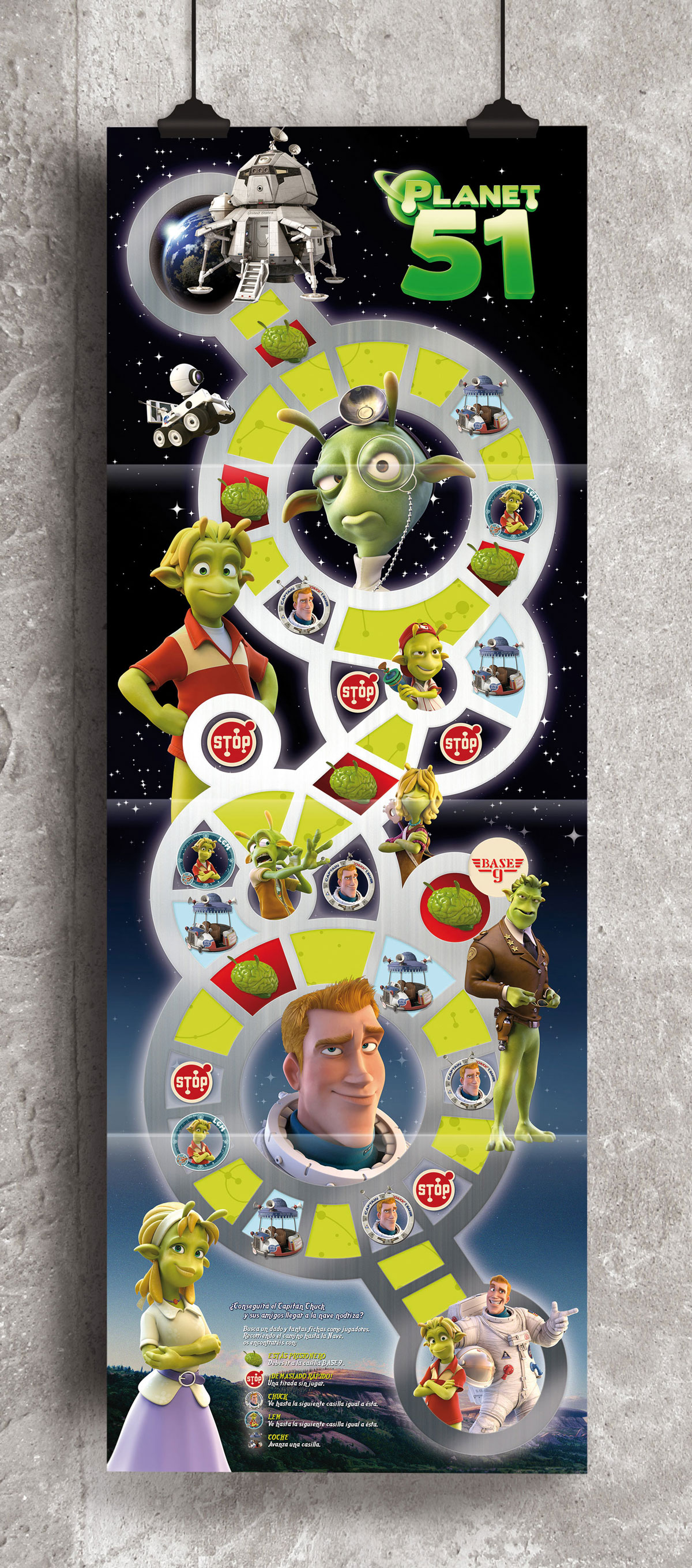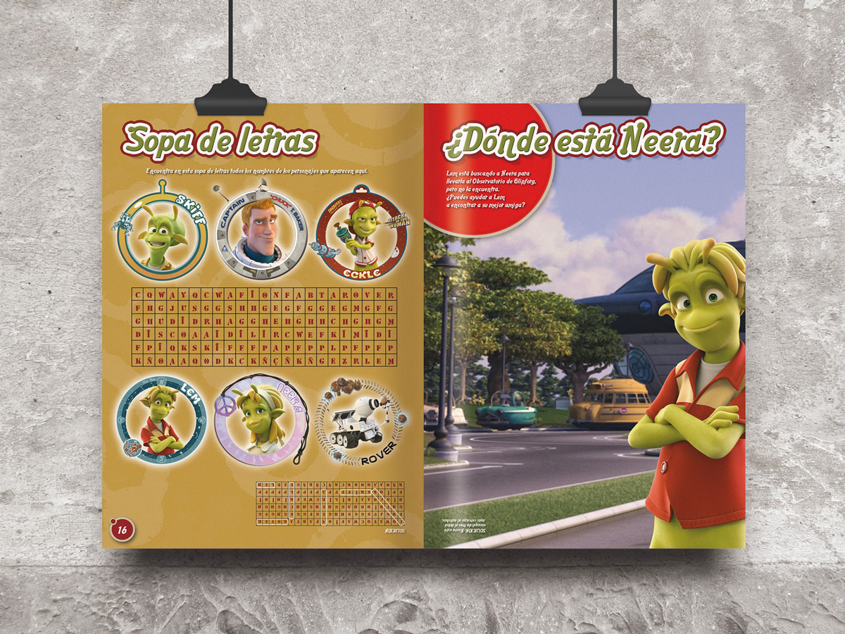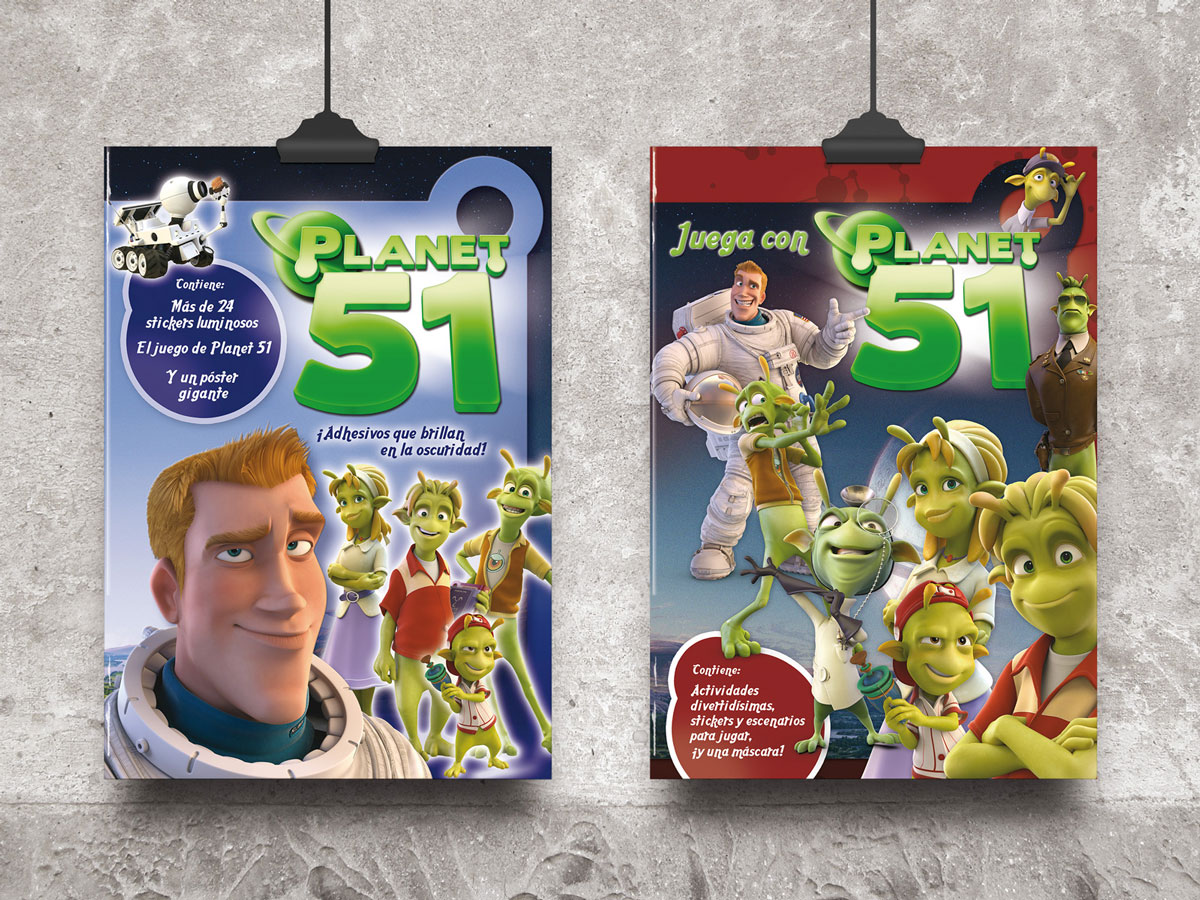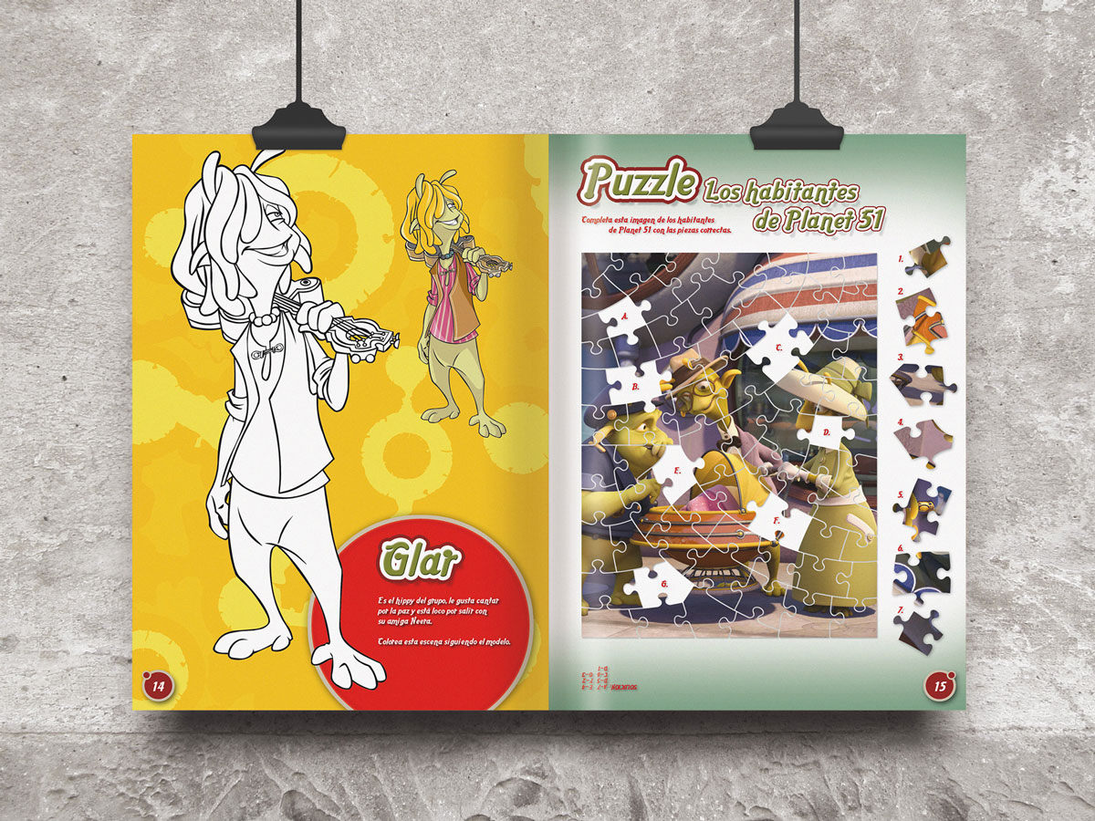 Following the style and criteria used in the travel guide Guía del viajero a Planet 51, we created a series of activity books filled with puzzles to solve and strategy games related to the film.